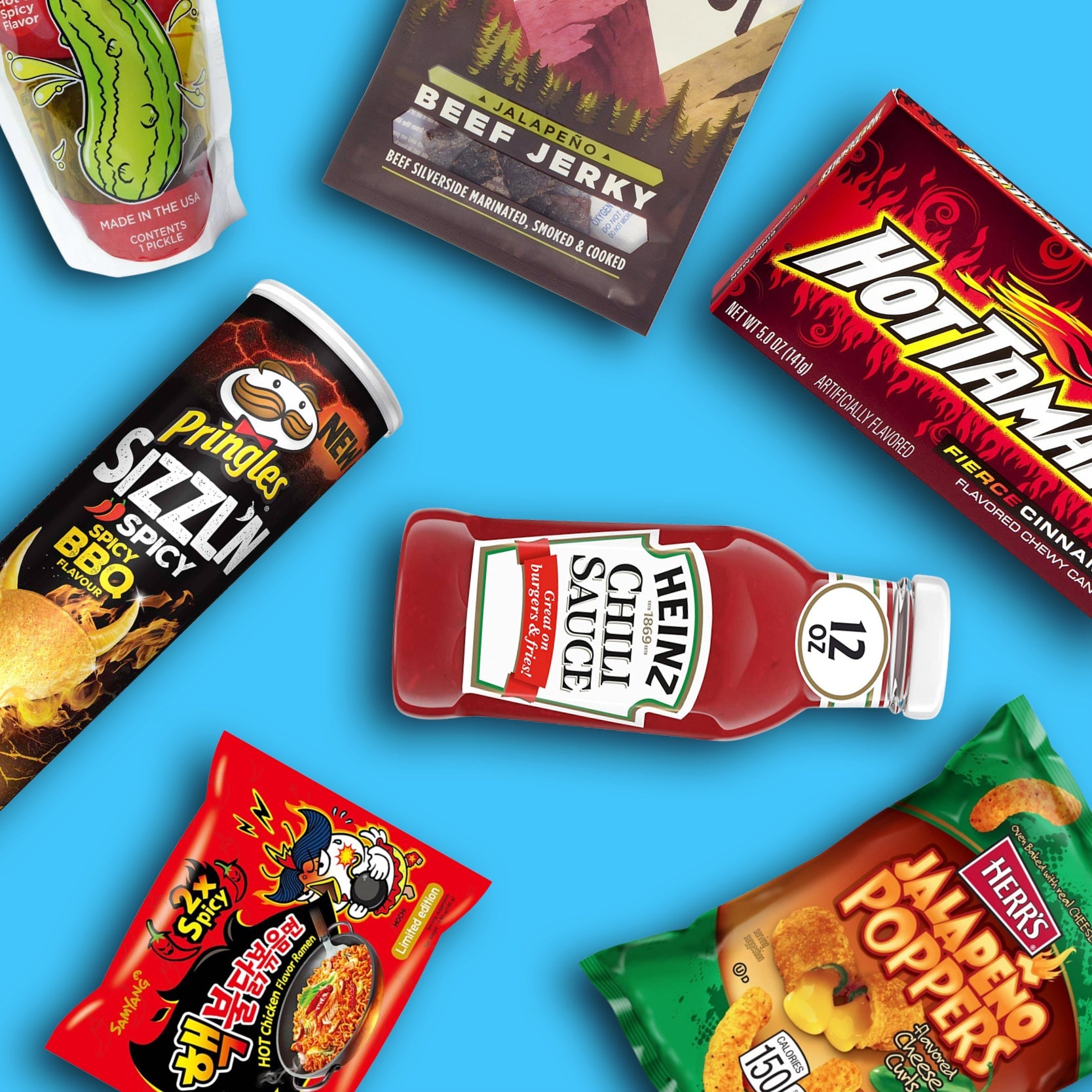 Meat Makers Beef Jerky Original Hot Hot Tamales Fierce Cinnamon Small Herr's Scorchin Hot Curls Carolina Reaper Small Mississippi Belle American Mustard Classic (DDM 01/2023) Jack Link's Beef Jerky Sweet & Hot Medium Samyang Ramen Spicy Hot Chicken Pringles Chips Flame Extra Hot Cheese & Chili Salsa Samyang Estremamente piccante Nissin Demae Ramen Spicy Hot Chip Strips Scorpio affumicato Pringles Chips Flame Chorizo